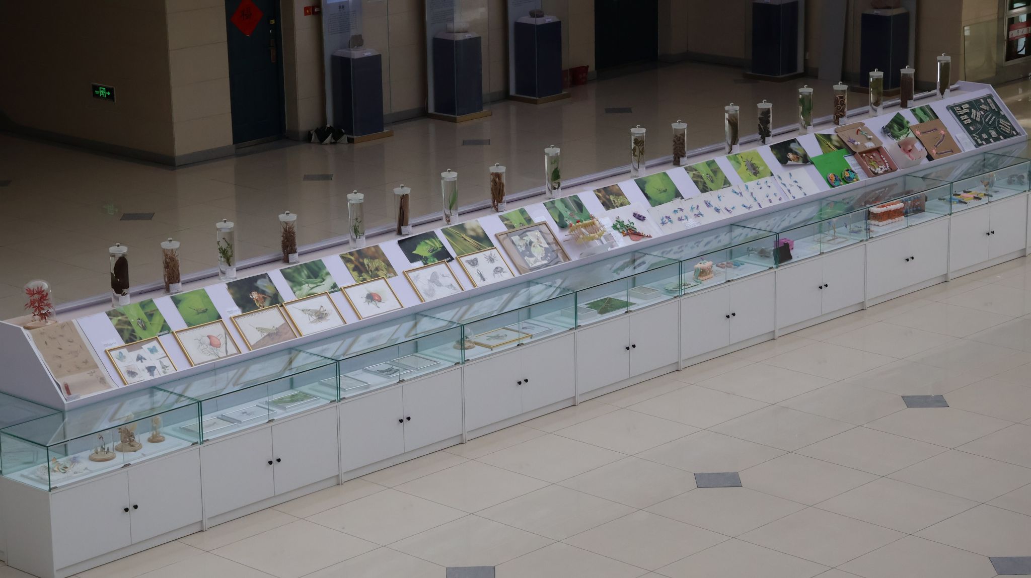 和张怡轩一样,师大人对大自然的爱,体现在日常的点点滴滴。来到生科院所在的格物楼,大厅一层中央摆放着学生实习实践的各类成果。在这里,不只有采自各地的动植物标本,还有学生用奇思妙想制作的DIY教学教具、“昆虫世界与人类社会”通识课上的摄影绘画作品,以及在基础教育学校从教的邓凯校友手写整理的高中生物知识点“清明上河图”等等。“博物”的含义,在这里拥有了更为鲜活的释义。