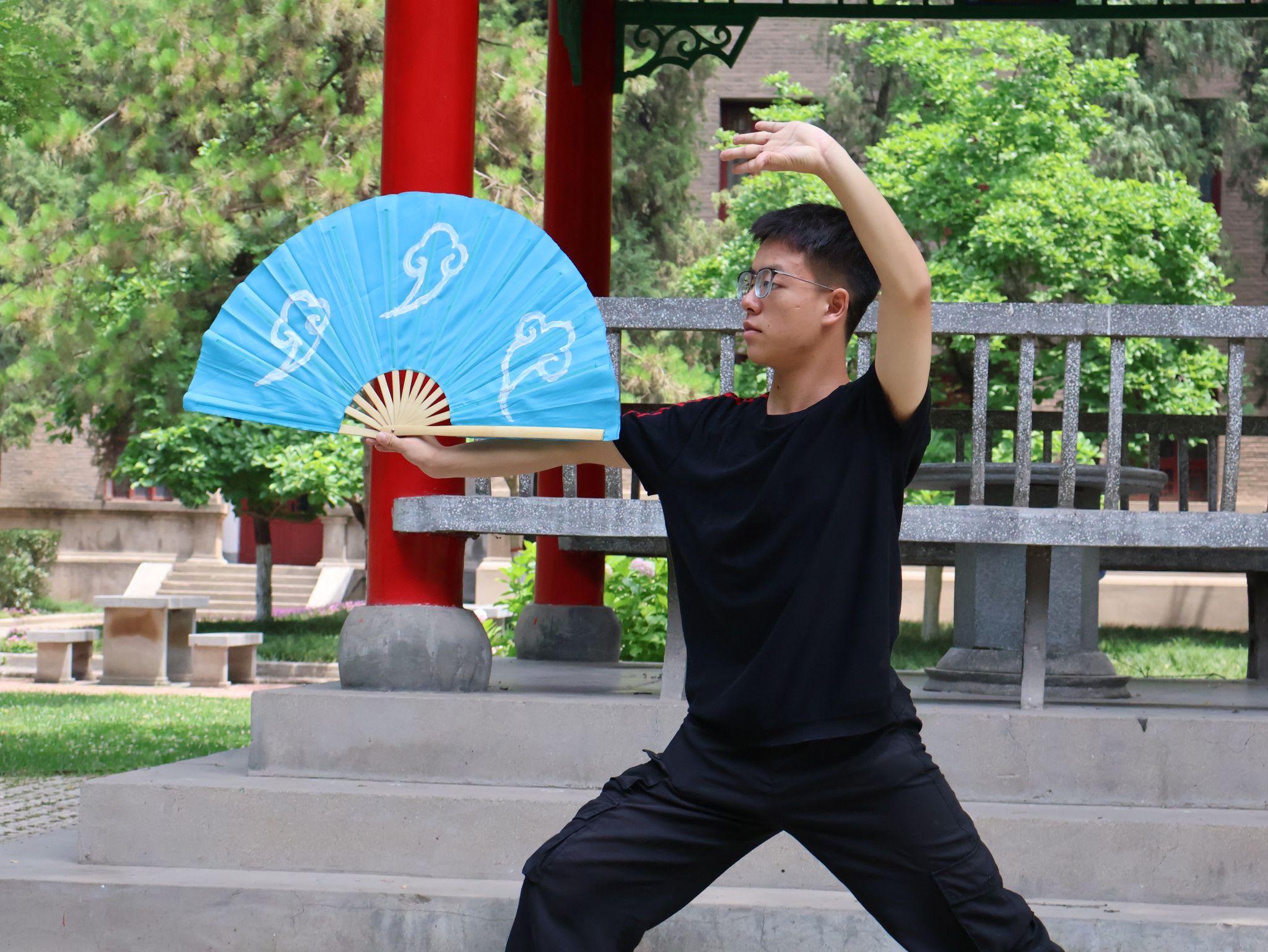 闵欣童面临的挑战则更为隐秘。半路出家的他缺少童子功,只能用翻倍的勤奋来补救,“50岁的师兄和我同期入门,他练劈腿时龇牙咧嘴,我掰袖口时手抖如筛,但我们依然在咬牙坚持。无论做什么事,只要真心喜欢,什么时候开始都不算晚。”