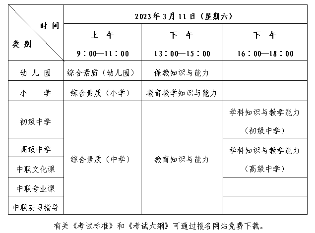 2.初级中学笔试科目中,“思想品德学科知识与教学能力(初级中学)”调整为“道德与法治学科知识与教学能力(初级中学)”;