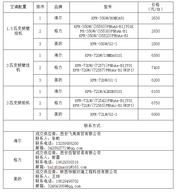 (二)空调信息查询。经办人在本通知前款查询空调品牌、型号、价格、成交供应商等信息,确定供应商、品牌型号及数量。