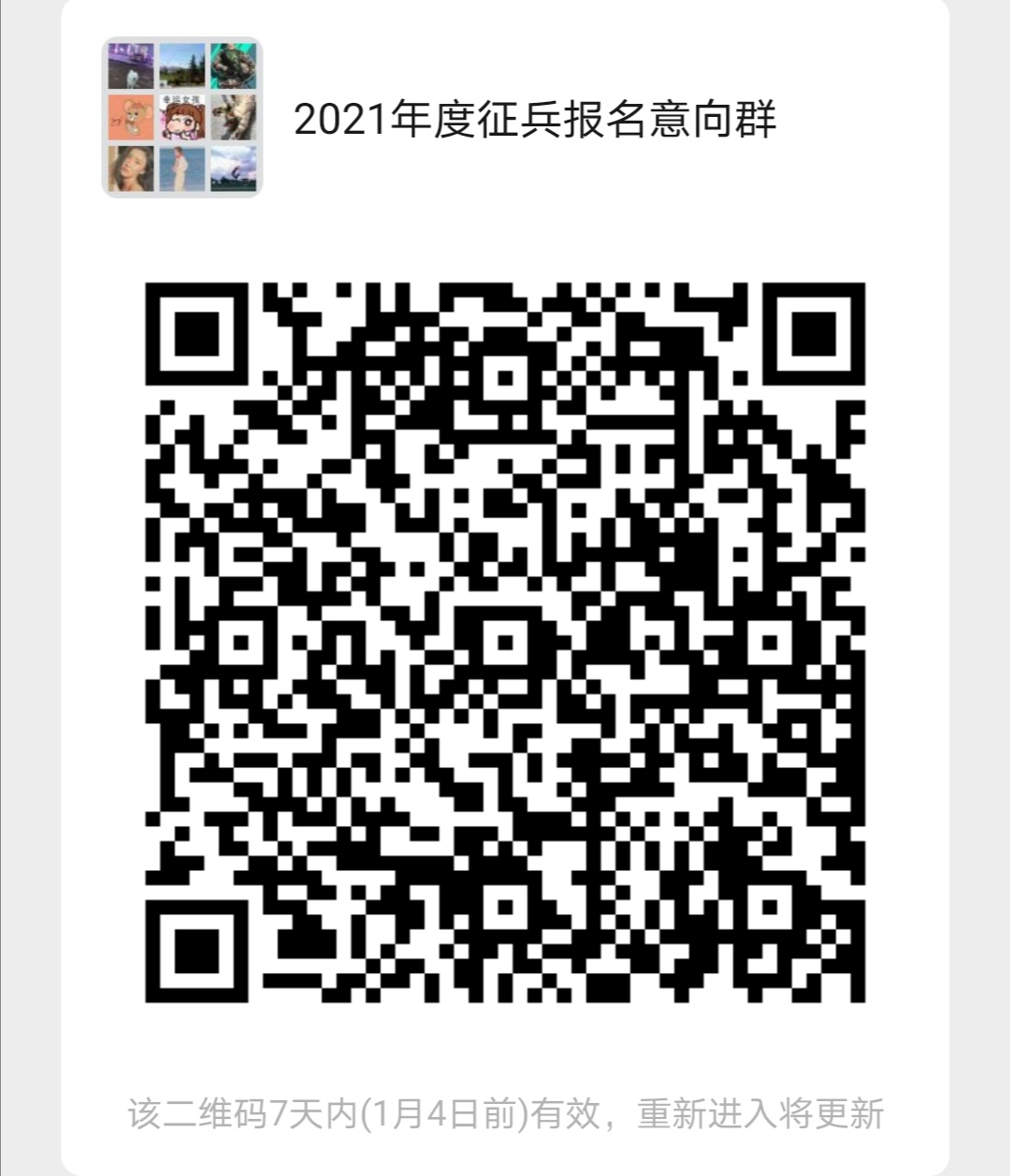 4.学校设立征兵工作站。具体情况可到学校征兵工作站了解或电话咨询,地址:雁塔校区学子食府东侧四楼,咨询电话:029-85308201,联系人:秦老师(13289244896)、贺老师(13032941992)。可关注微信公众号“2021年度征兵报名意向群”。