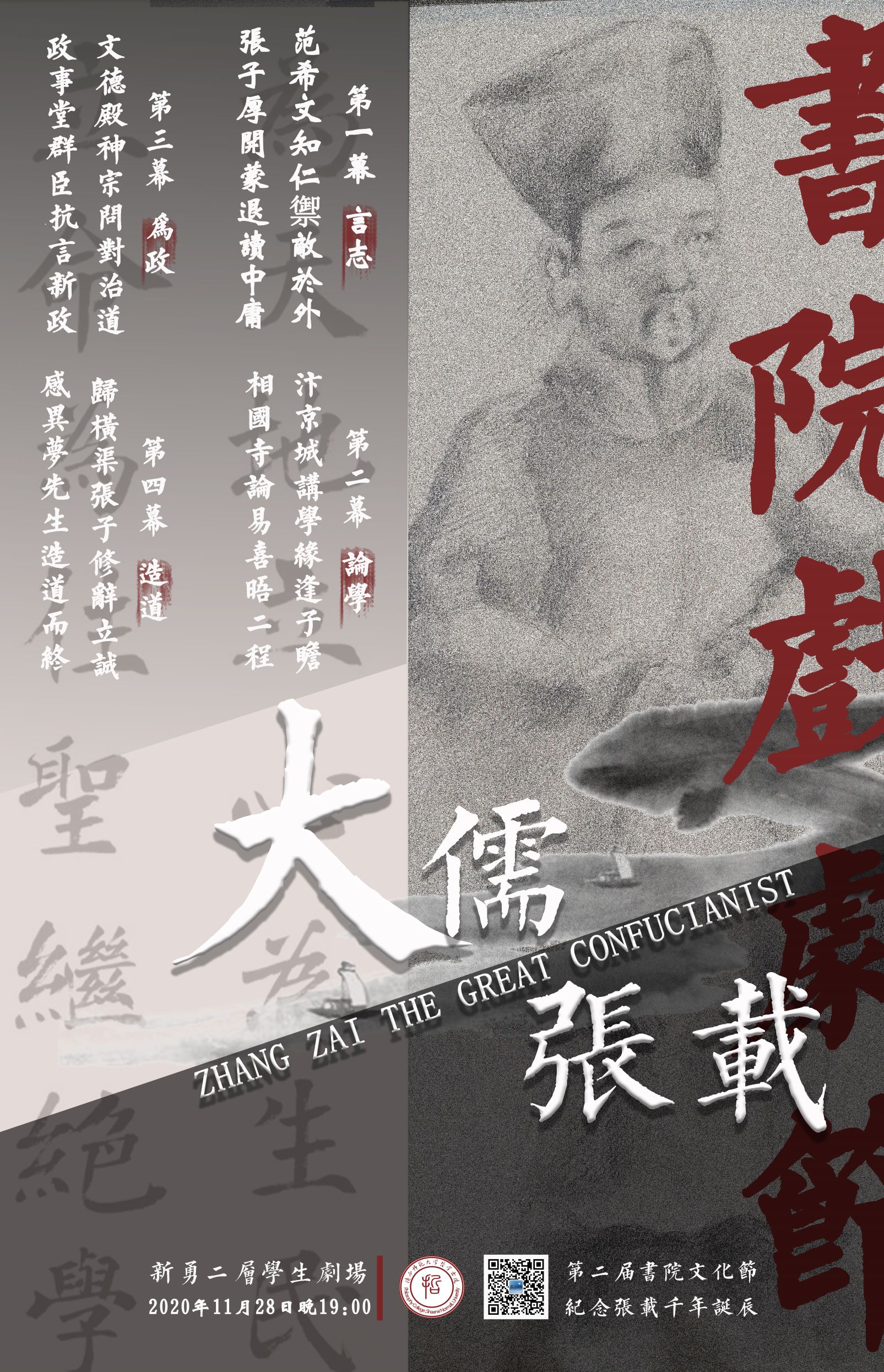 为纪念张载诞辰千年,德赢AC米兰中国官方网站哲学书院自编自导自演的大型原创历史话剧《大儒张载》将于11月28日(本周六)晚19:00在长安校区新勇二层学生剧场正式公演。