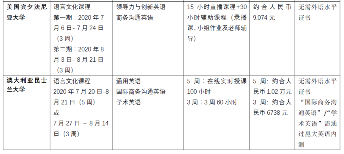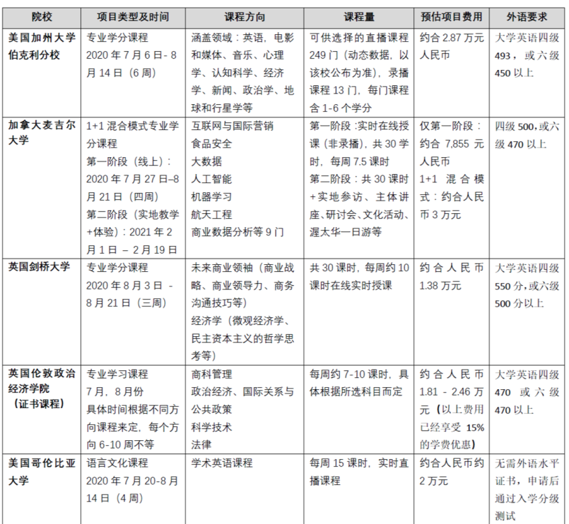 备注:学生通过项目面试及外方大学审核后,缴纳项目费用,经国外大学录取后方可参加学习。