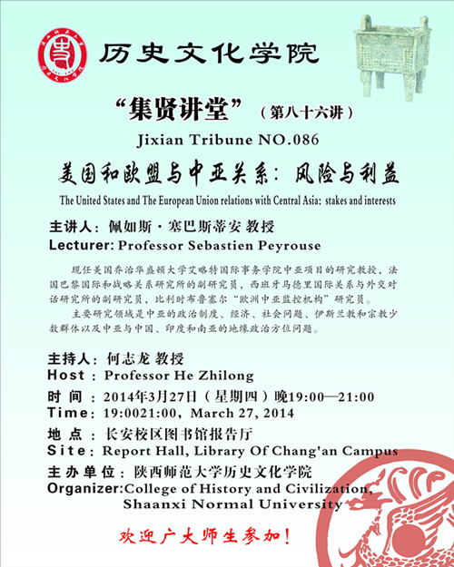 讲座题目:美国和欧盟与中亚关系:风险与利益