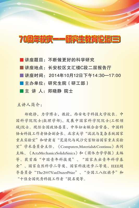 讲座题目:70周年校庆——研究生教育论坛(三)