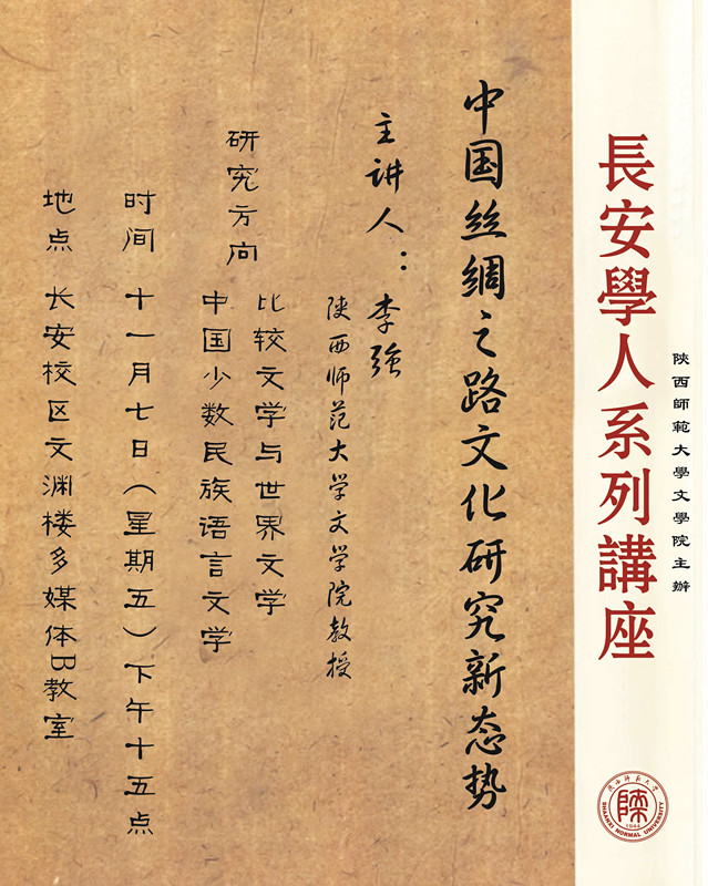 讲座题目:长安学人系列讲座:中国丝绸之路文化研究新态势
