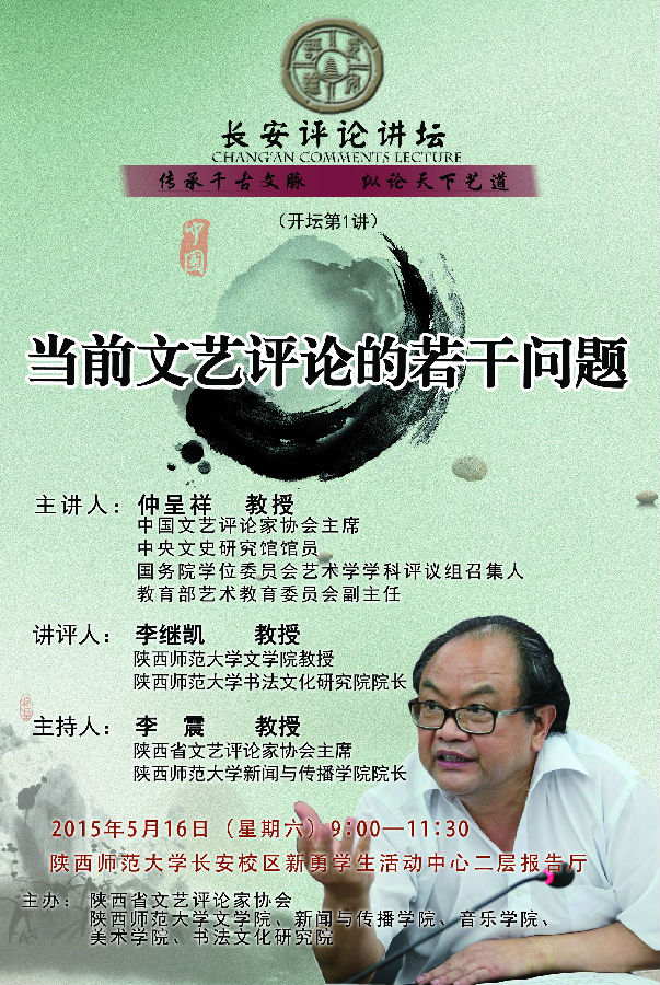 讲座题目:长安评论讲坛第1讲:当前文艺评论的若干问题