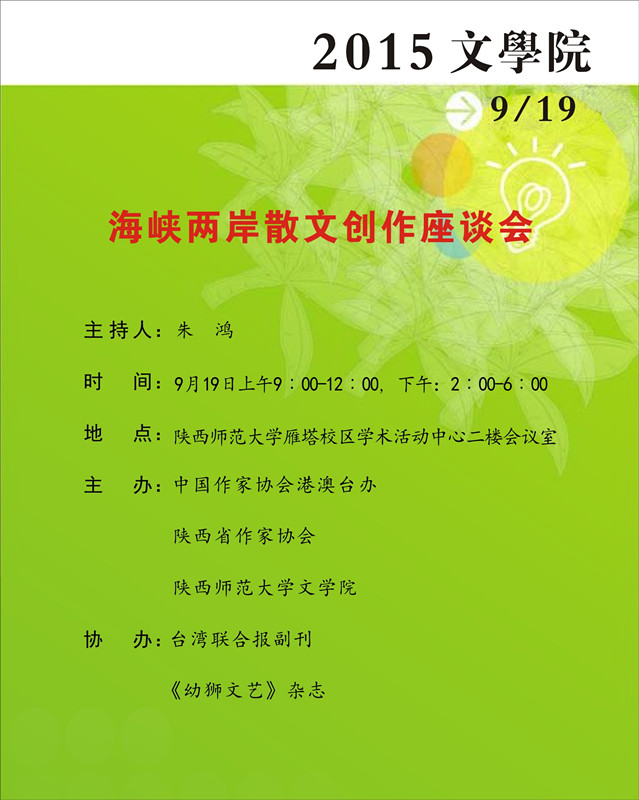 讲座题目:海峡两岸散文创作座谈会
