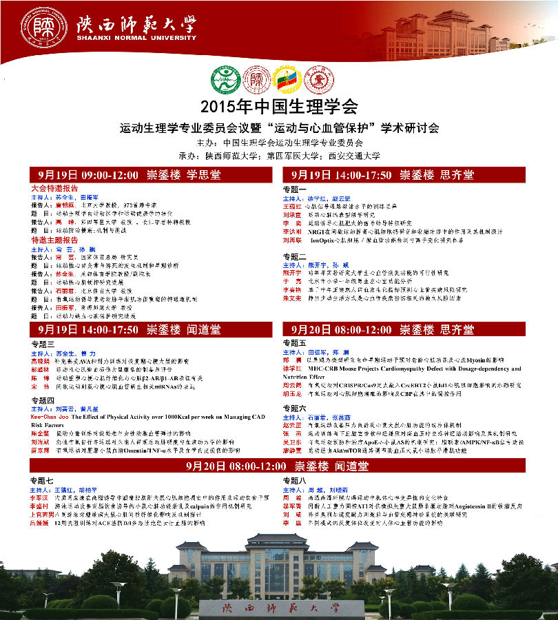 活动类别:2015年中国生理学会运动生理学专业委员会议暨“运动与心血管保护”学术研讨会