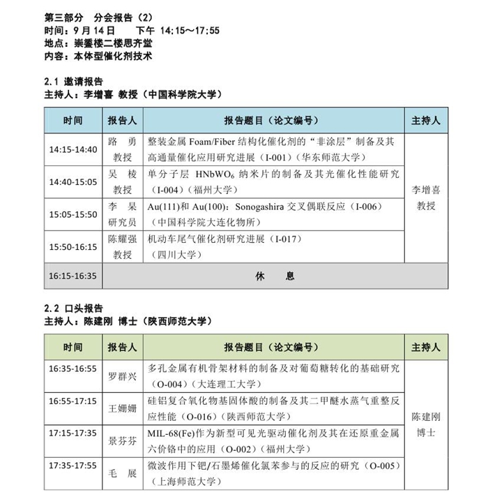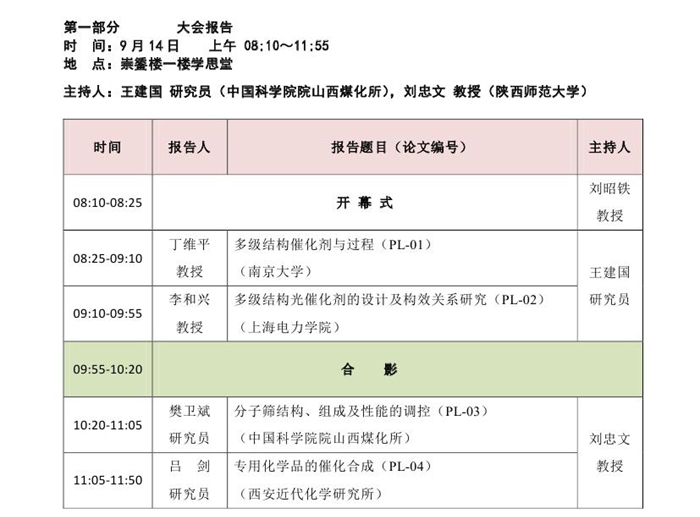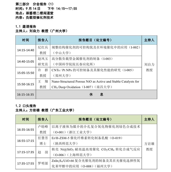 讲座题目:第九届全国催化剂制备科学与技术研讨会