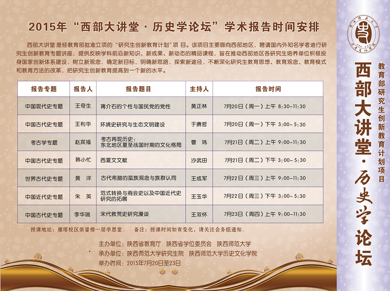 活动类别:2015年“西部大讲堂•历史学论坛”学术报告