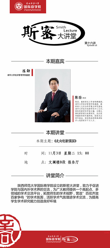 讲座题目:国际商学院斯密大讲堂第十六讲:走向创新强国