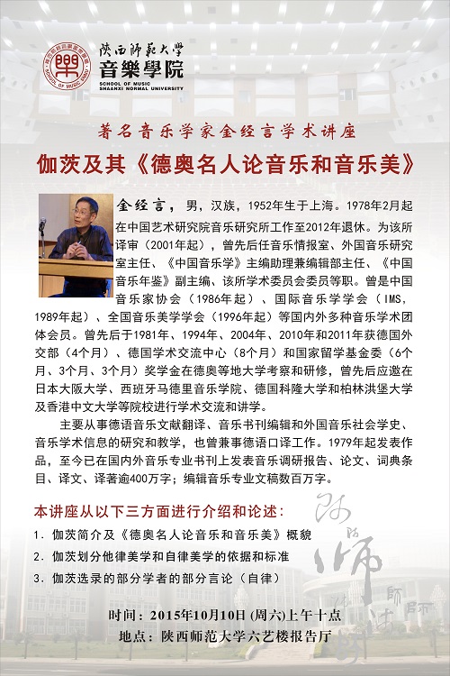 讲座题目:伽茨及其《德奥名人论音乐和音乐美》