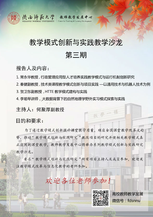 活动类别:教学模式创新与实践教学沙龙第三期:实验、实践性教学