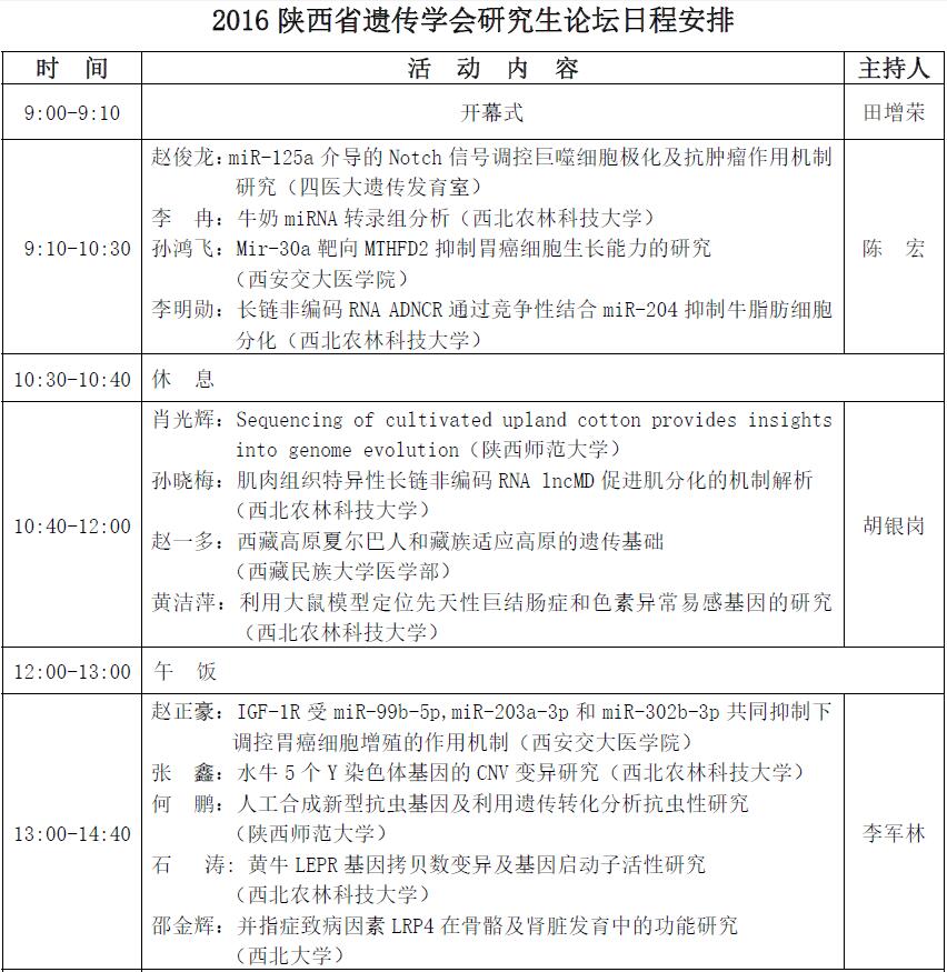 讲座题目:2016年陕西省遗传学会研究生论坛