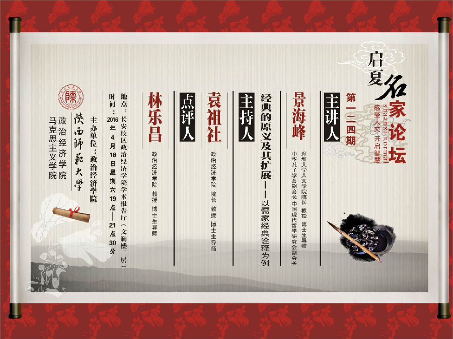 讲座题目:经典的原义及其扩展——以儒家经典诠释为例