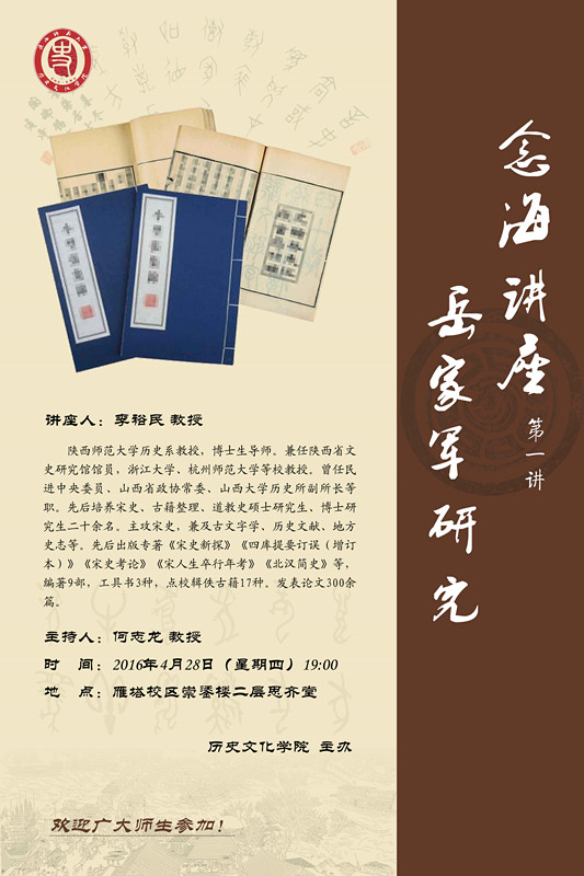 讲座题目:念海讲座第1讲:岳家军研究