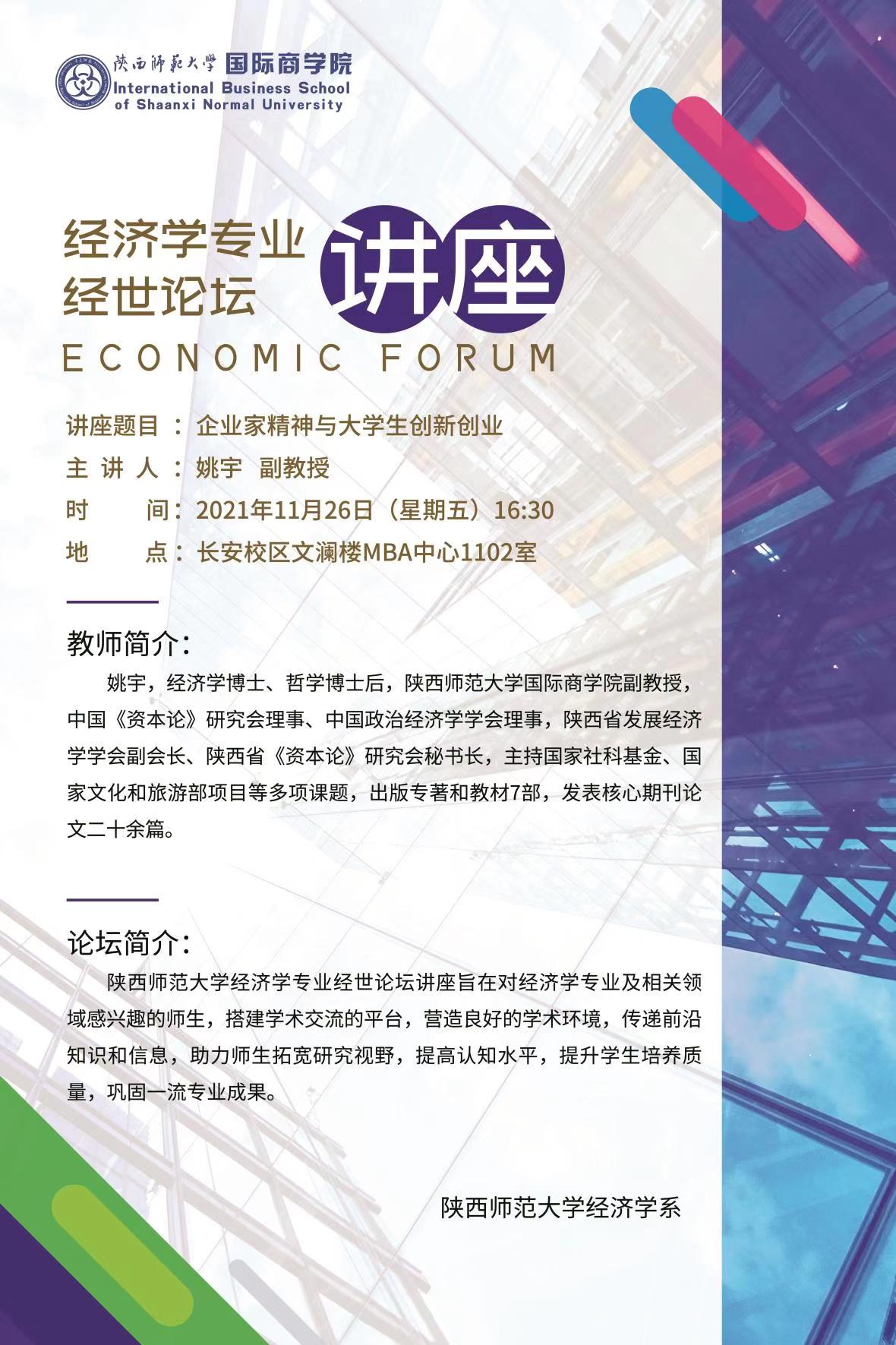 经济学专业《经世论坛》讲座——企业家精神与大学生创新创业