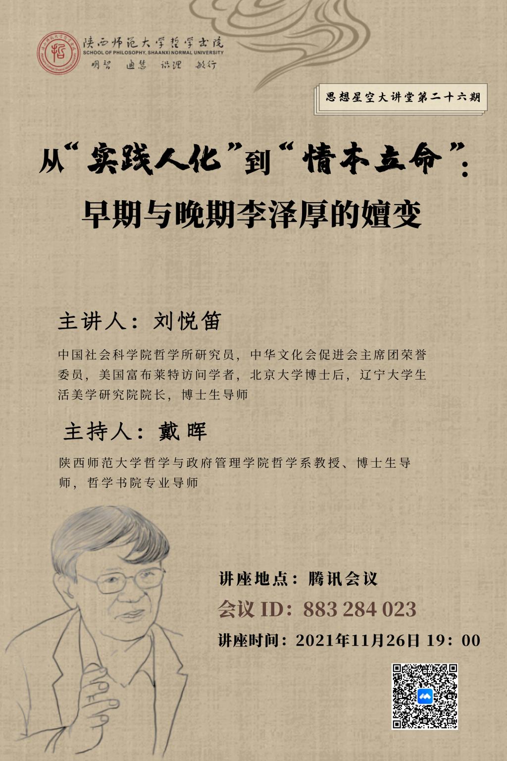 思想星空大讲堂第二十六期:从“实践人化”到“情本立命”——早期与晚期李泽厚的嬗变