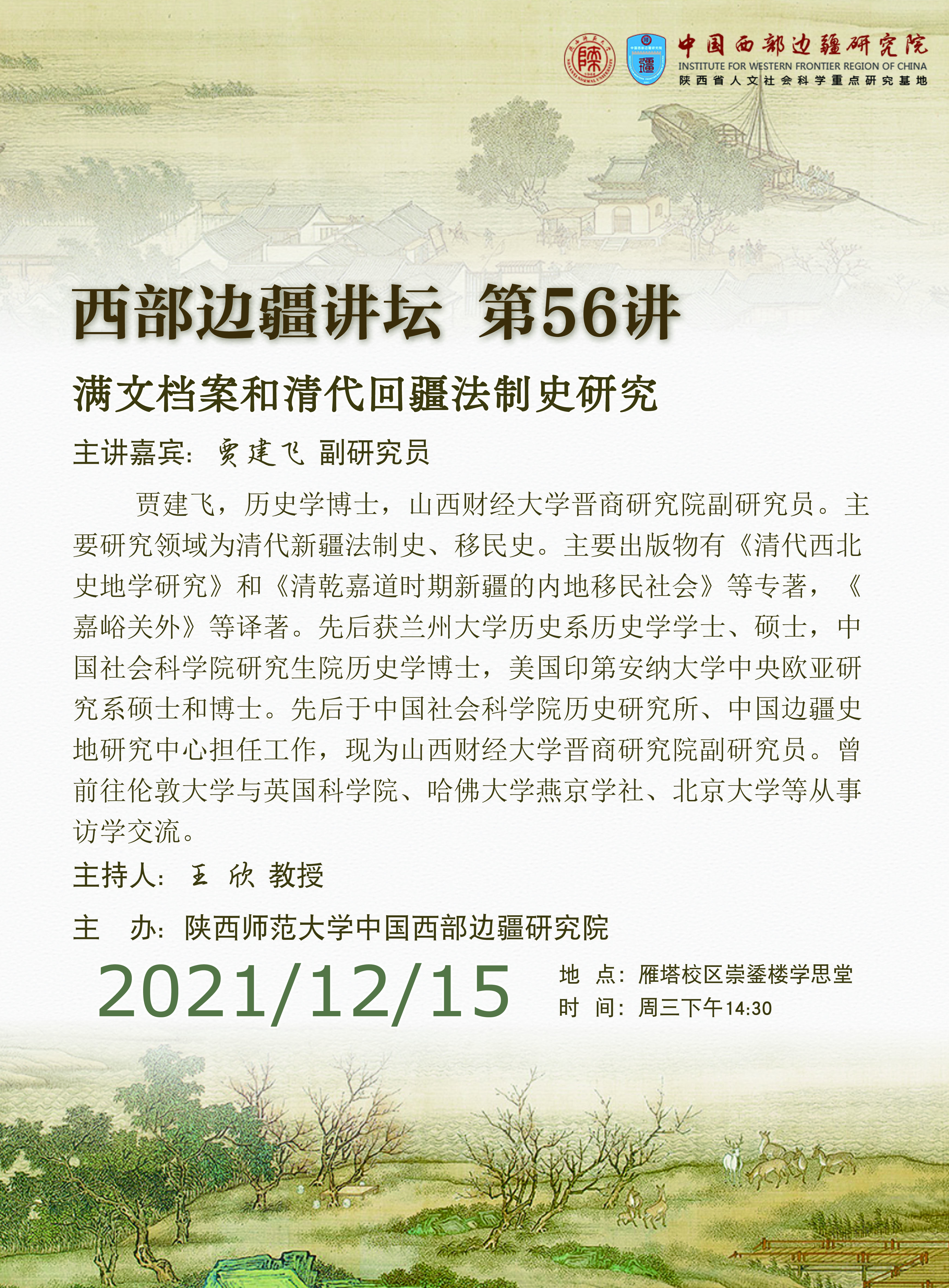 西部边疆讲坛(第56讲):满文档案和清代回疆法制史研究