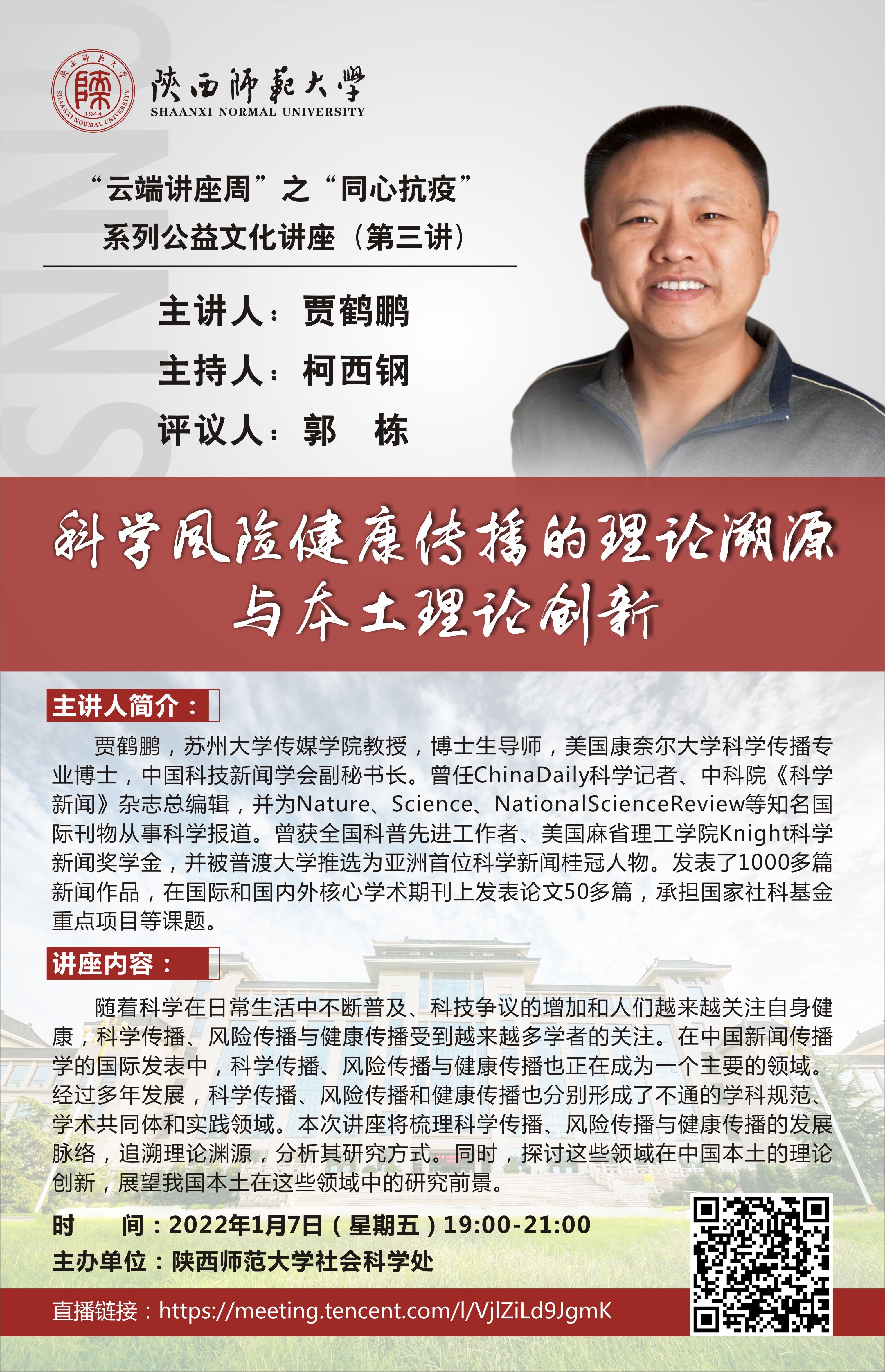 “云端讲座周”之“同心抗疫”系列公益文化讲座(第三讲):科学风险健康传播的理论溯源与本土理论创新