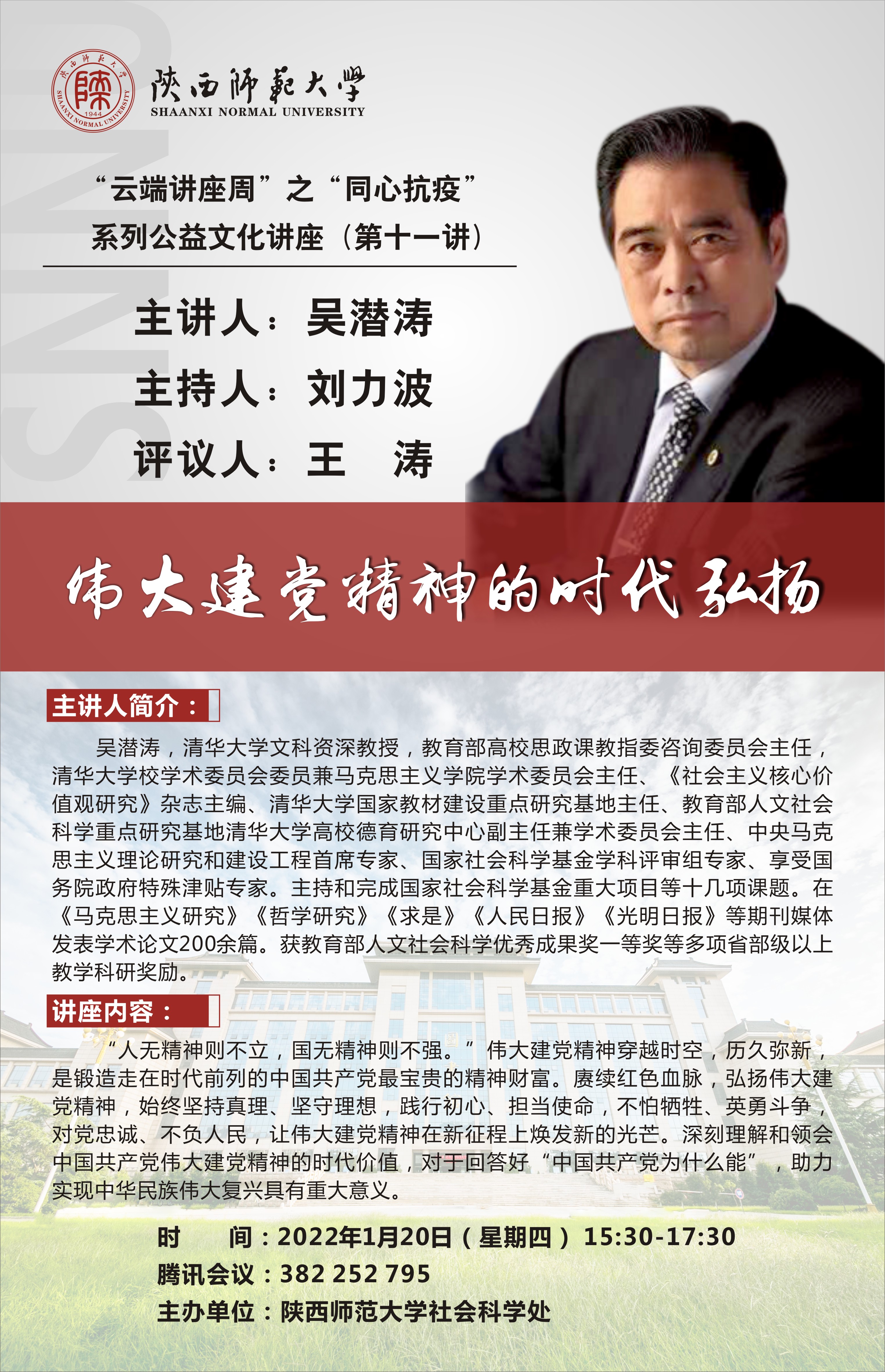 “云端讲座周”之“同心抗疫”系列公益文化讲座(第十一讲):伟大建党精神的时代弘扬