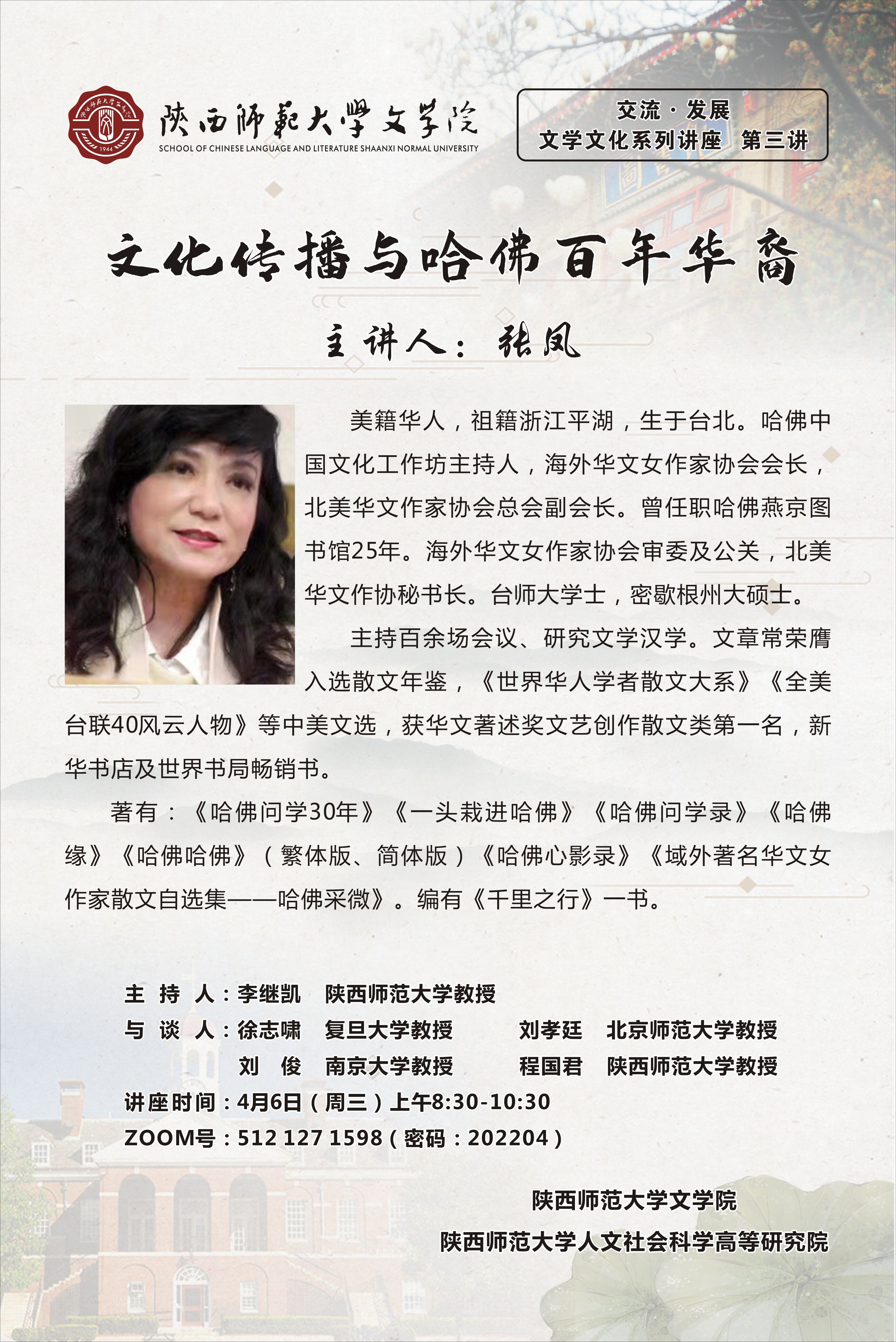 交流 发展:文学文化系列讲座(第三讲)——文化传播与哈佛百年华裔