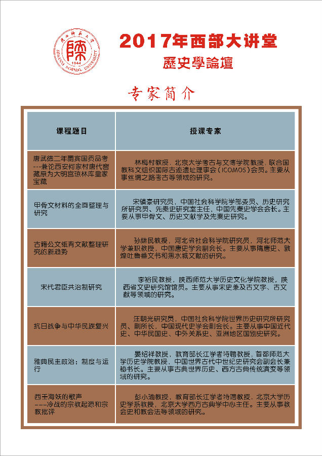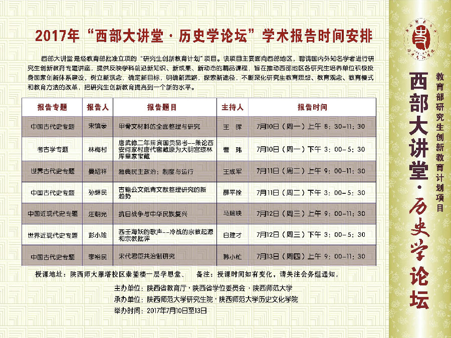 活动类别:2017年“西部大讲堂·历史学论坛”学术报告