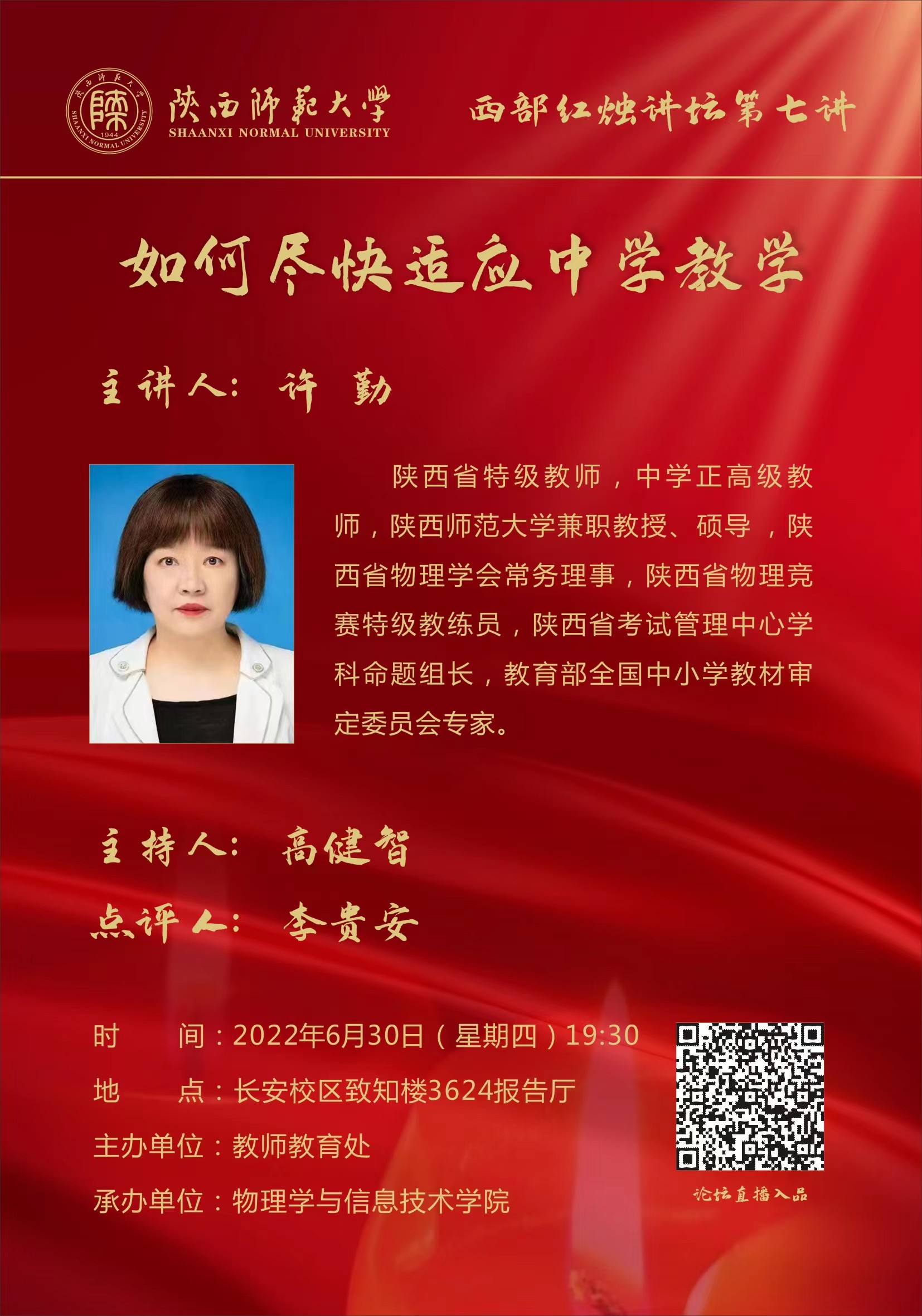 西部红烛讲坛第七讲——如何尽快适应中学教学