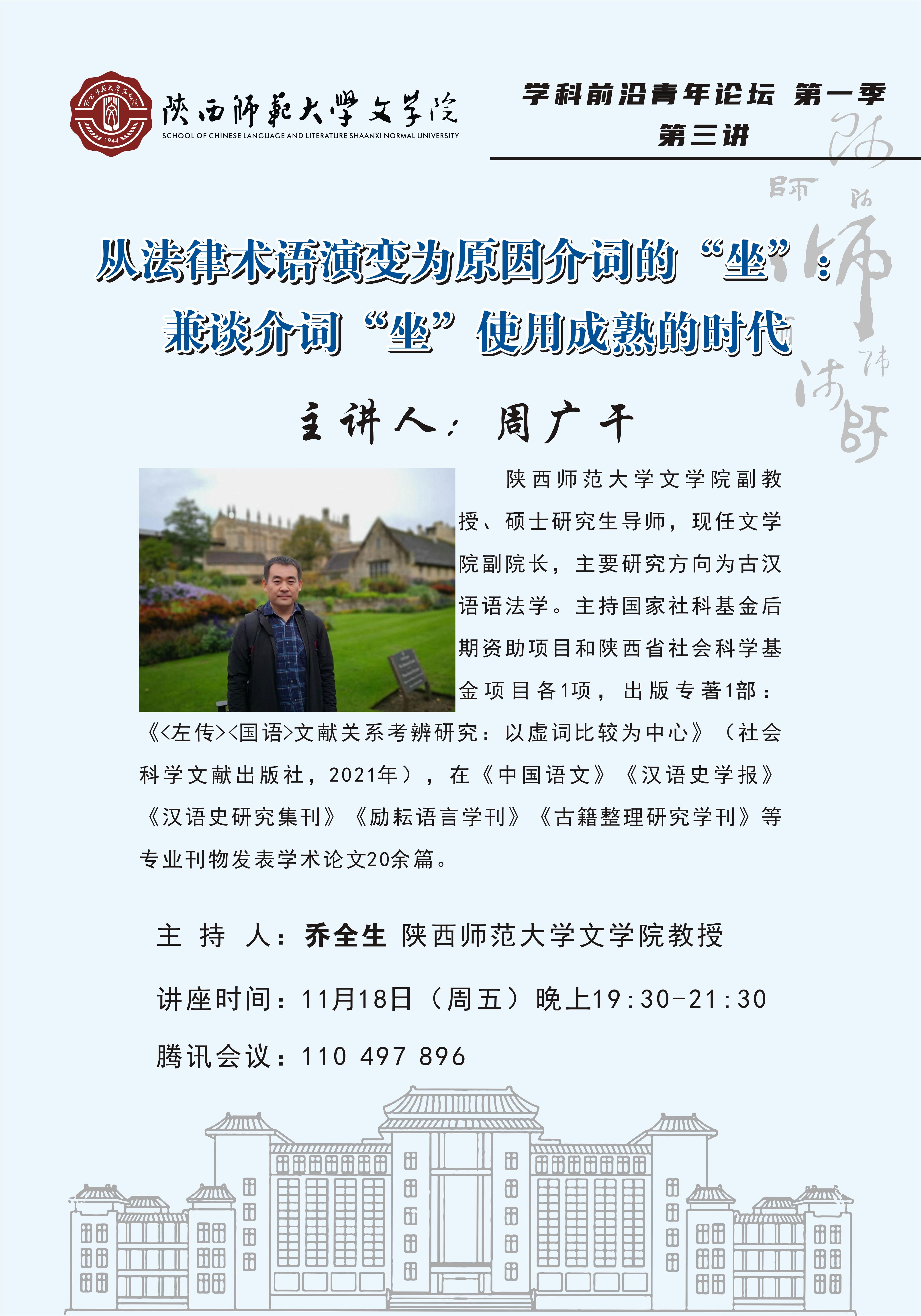 学科前沿青年论坛(第一季第三讲) 从法律术语演变为原因介词的“坐”:兼谈介词“坐”使用成熟的时代