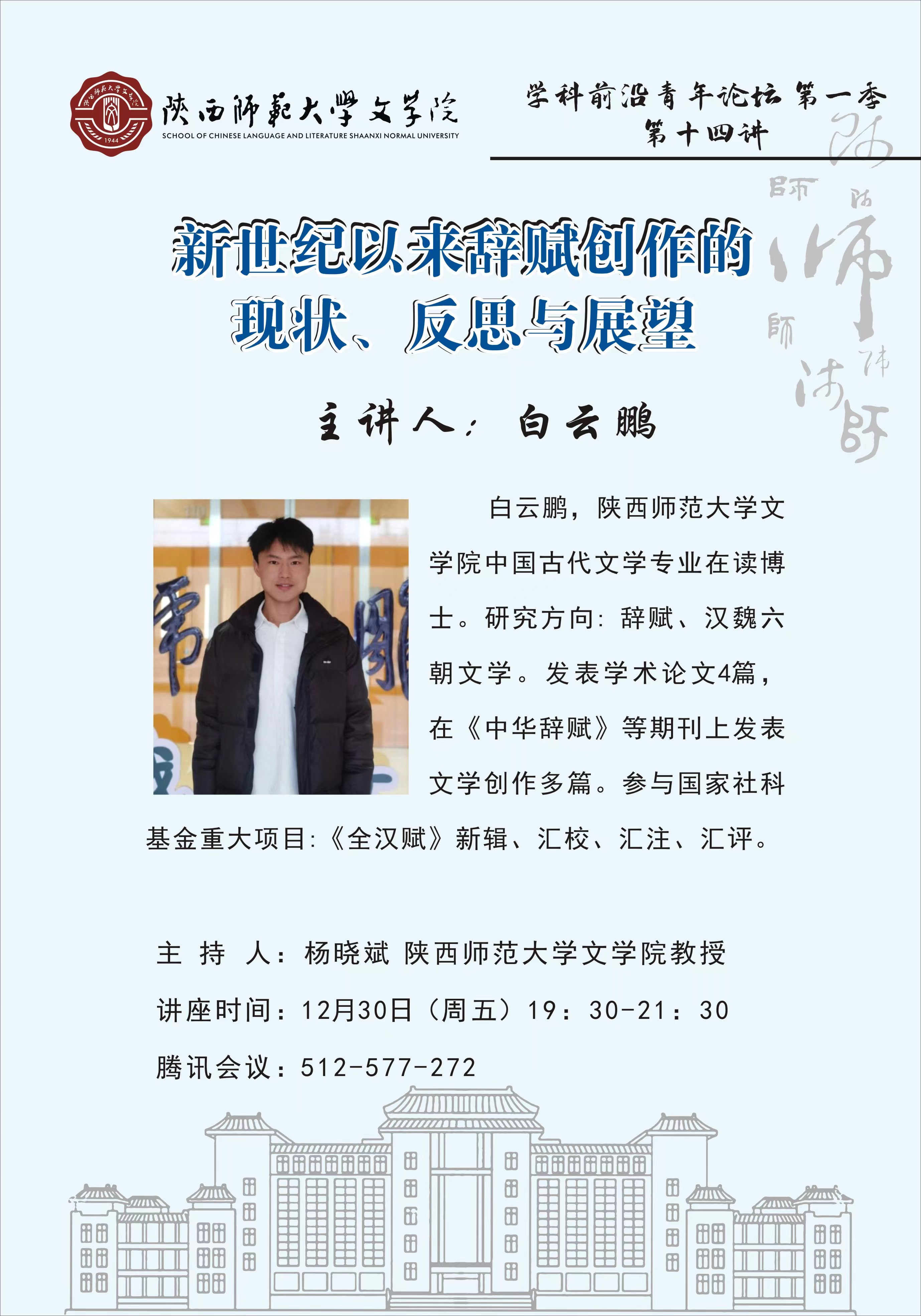 学科前沿青年论坛(第一季第十四讲):新世纪以来辞赋创作的现状、反思与展望