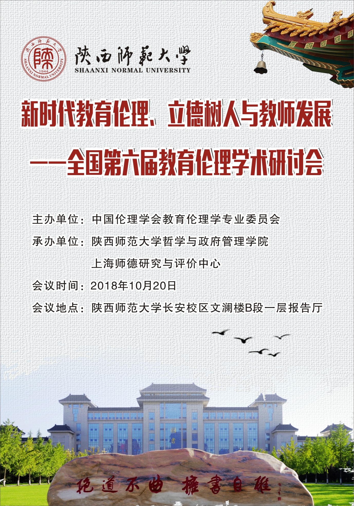 会议开幕式: 1.德赢AC米兰中国官方网站校长游旭群教授致欢迎辞(15分钟) 2.湖南师范大学王泽应教授代表中国伦理学会万俊人会长致辞(8分钟) 3.教育部教师工作司二级巡视员赵建军代表王定华司长致辞(15分钟) 4.中国伦理学会教育伦理学专业委员会会长、上海师范大学王正平教授发表会议主题讲话:《立德树人是新时代教育伦理的根本原则》(15分钟) 5.江苏第二师范学院副校长张勤教授宣读第二批“全国师德建设实践与创新基地”建设单位名单(5分钟) 6.第二批“全国师德建设实践与创新基地”授牌仪式(10分钟)  |
