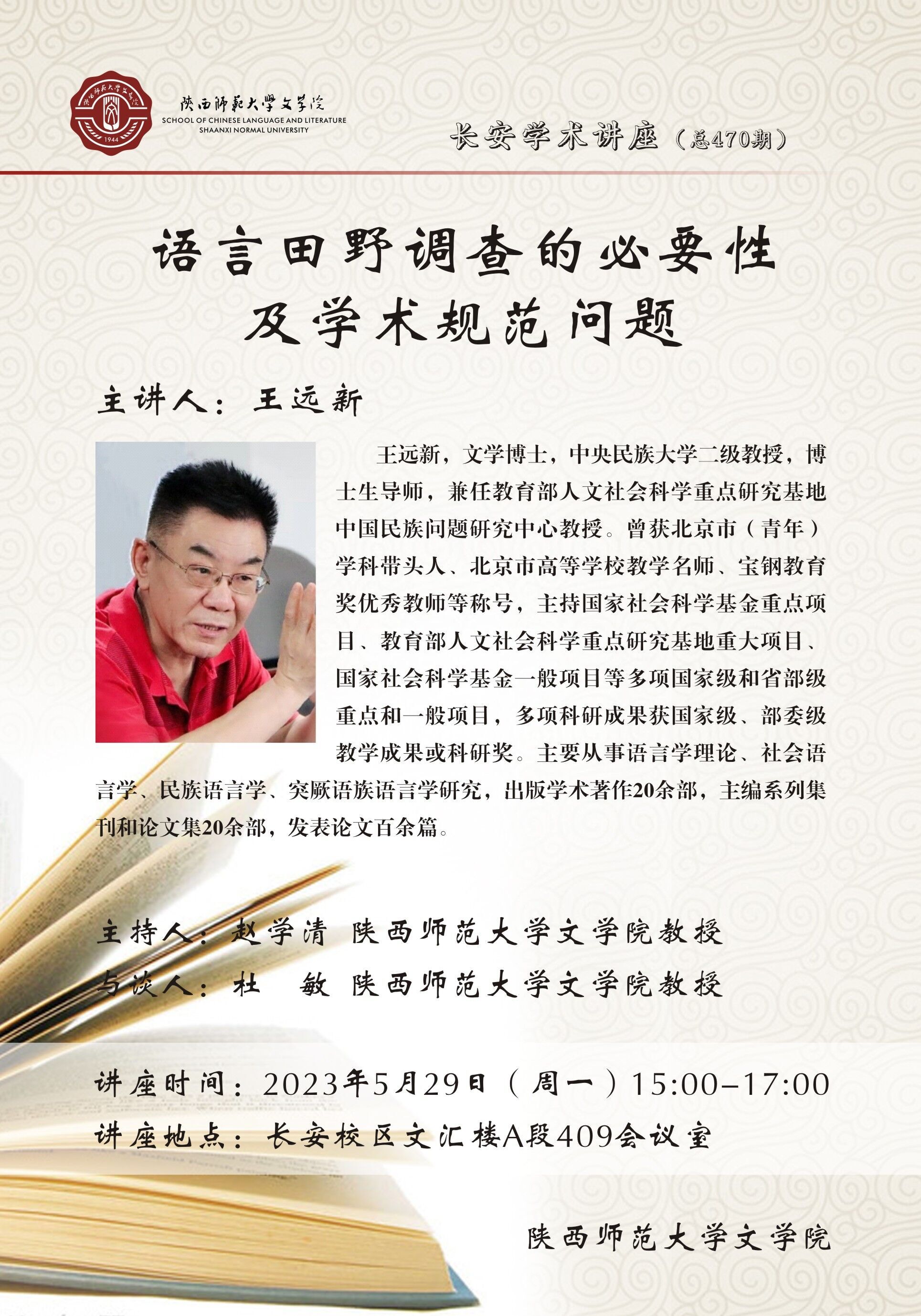 长安学术讲座(总470期)语言田野调查的必要性及学术规范问题