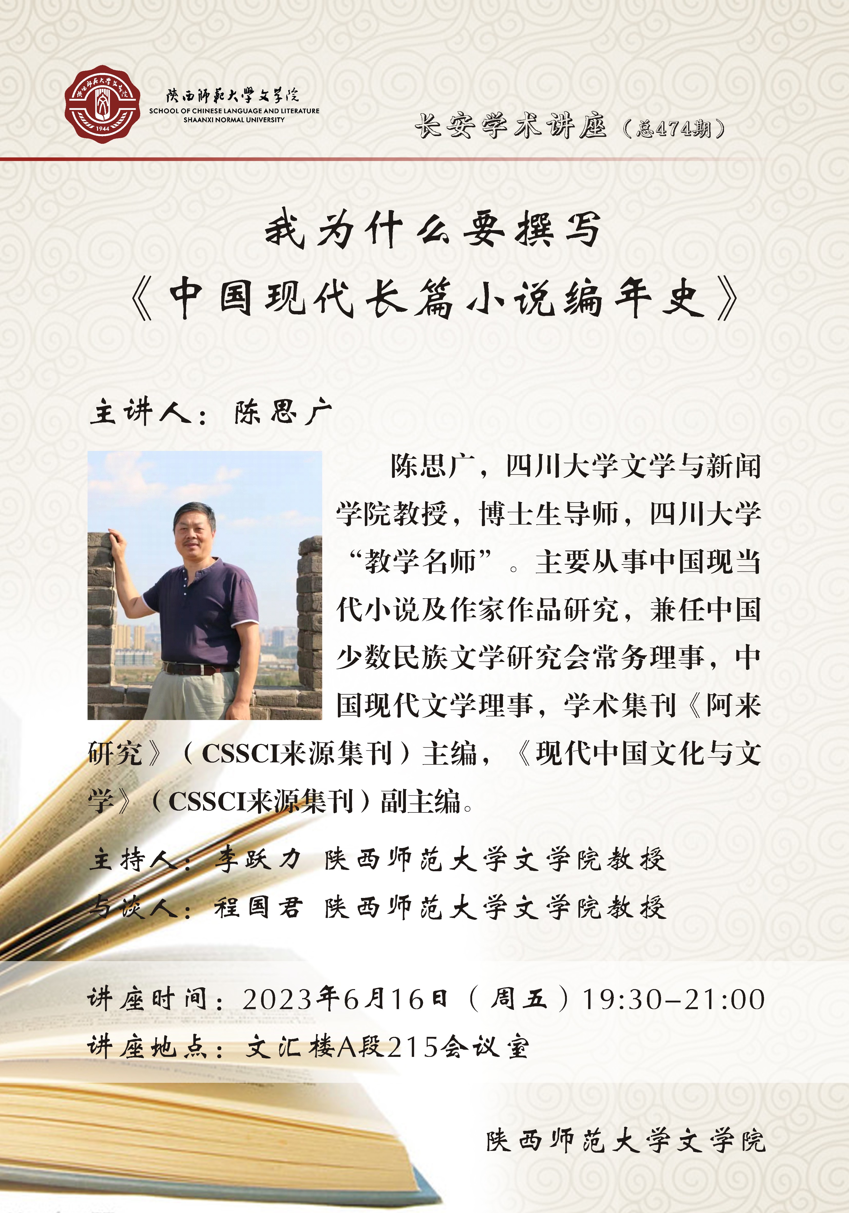 长安学术讲座(总474期)我为什么要撰写《中国现代长篇小说编写史》