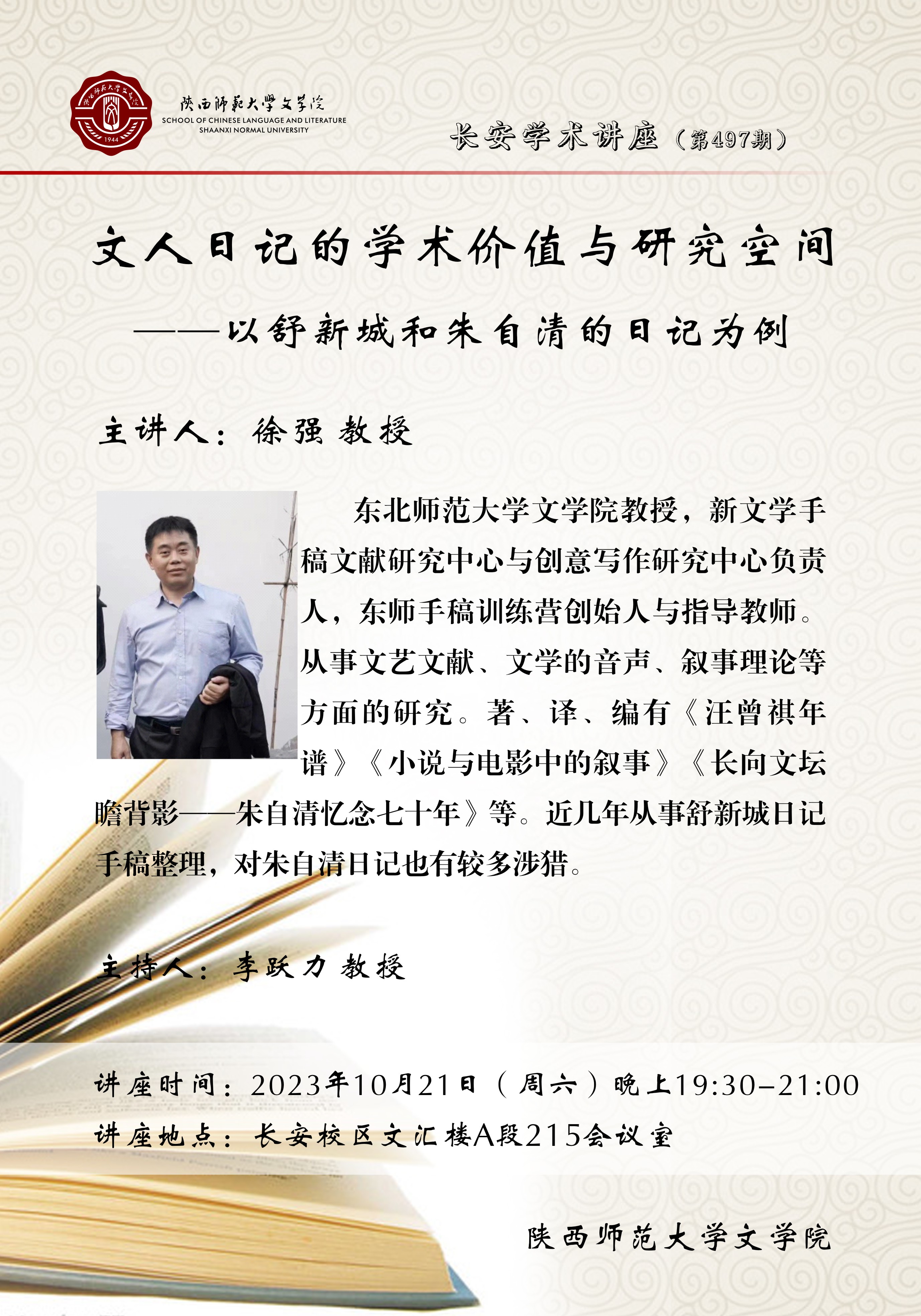 长安学术讲座(总497期) 文人日记的学术价值与研究空间——以舒新城和朱自清的日记为例