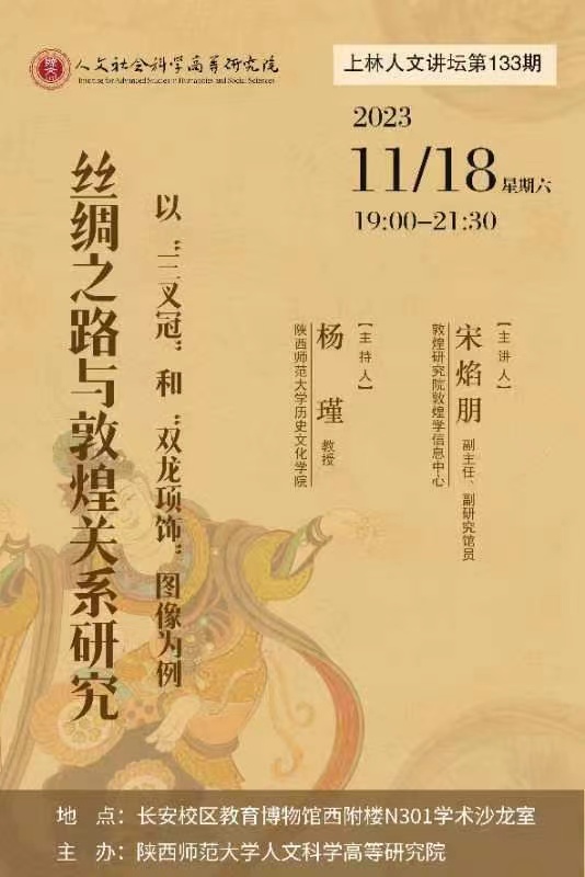 上林人文讲坛第133期 丝绸之路与敦煌关系研究:以“三叉冠”和“双龙项饰”图像为例