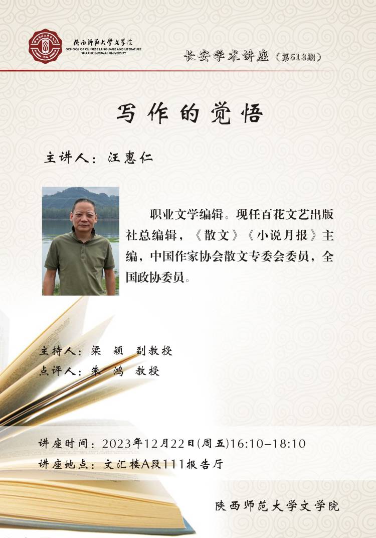 长安学术讲座(第512期) 完成型作家与未完成型作家