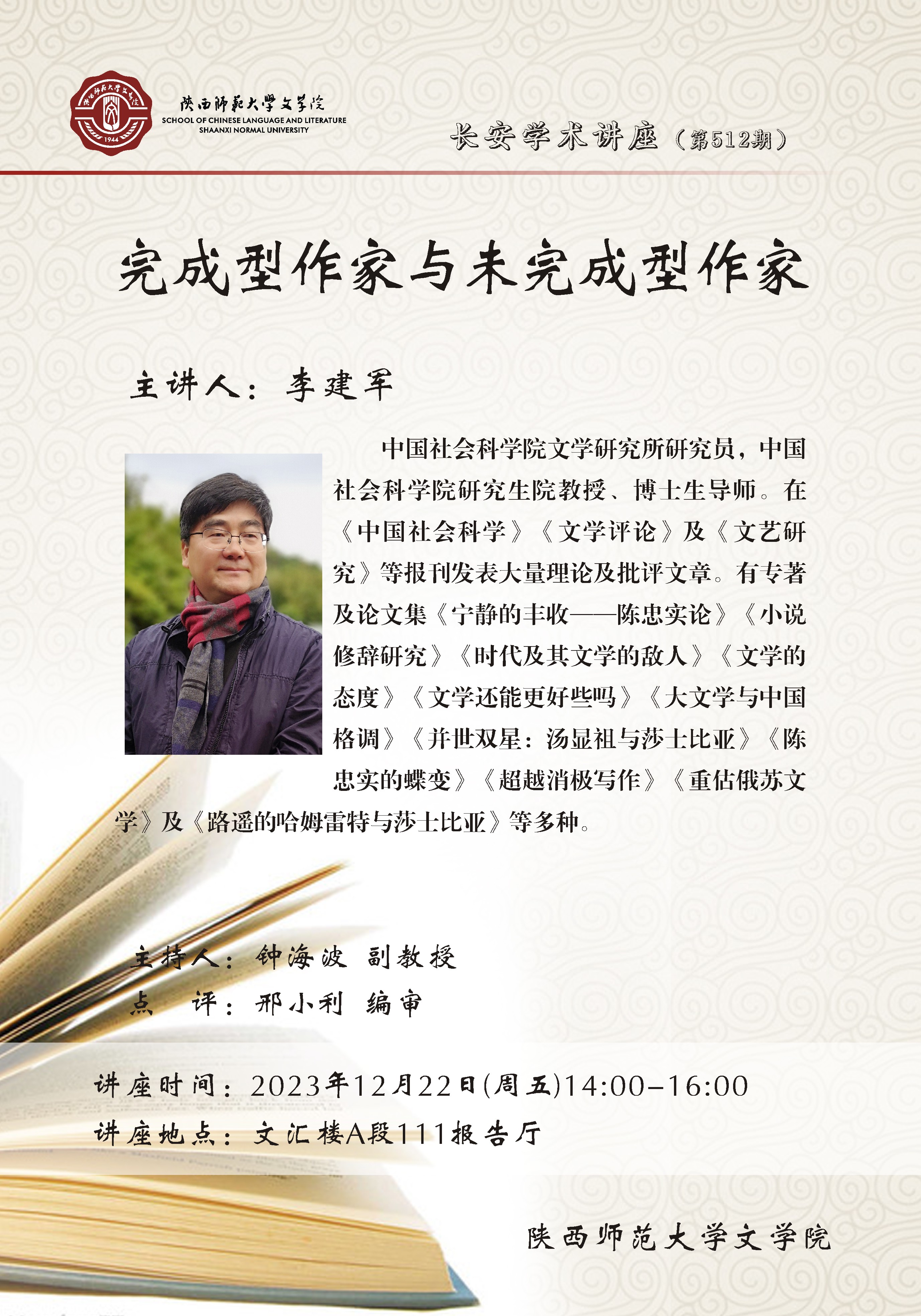 长安学术讲座(第512期) 完成型作家与未完成型作家