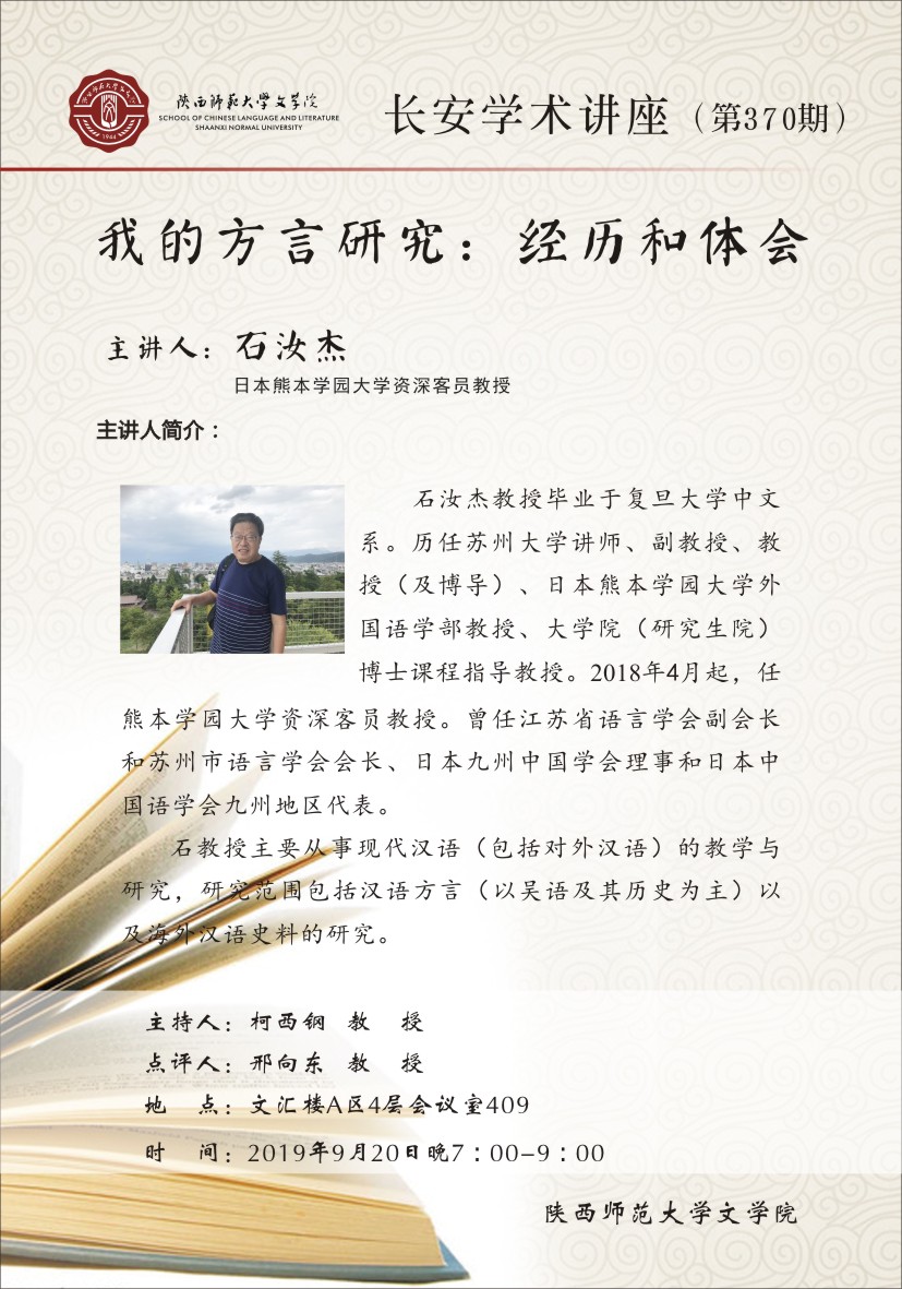 长安学术讲座(第370期) 我的方言研究:经历和体会