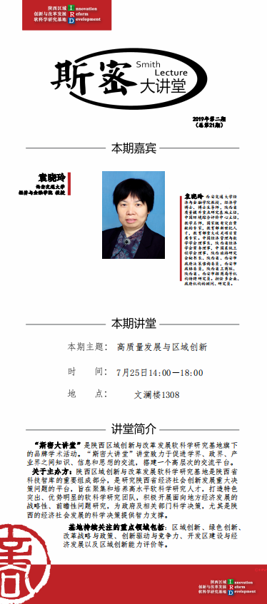 国际商学院斯密大讲堂第二十一讲:高质量发展与区域创新