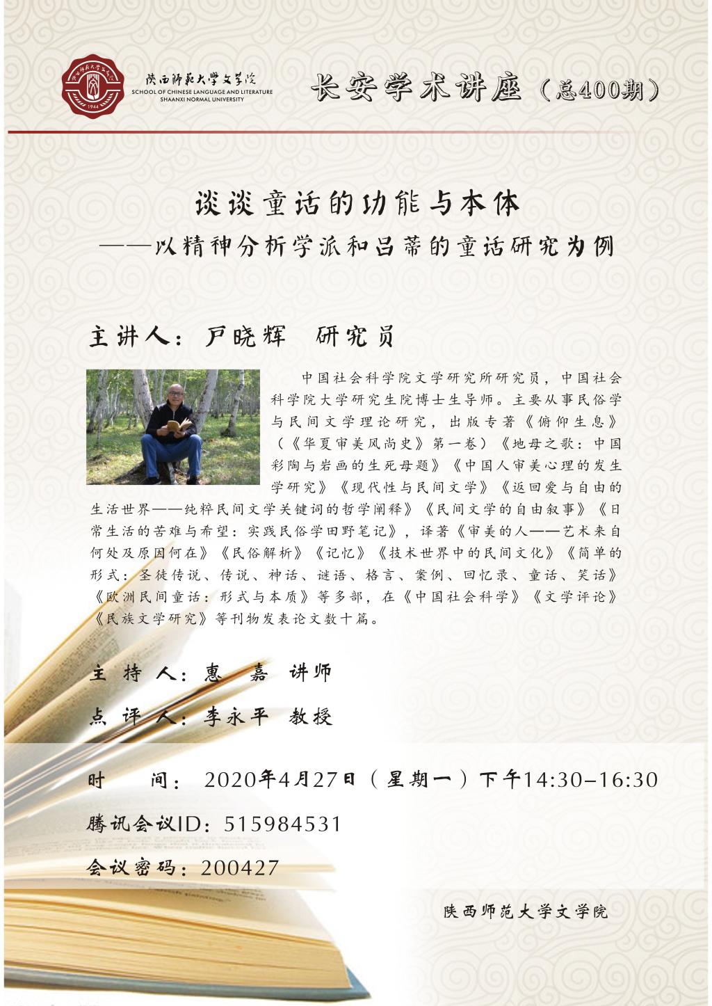 长安学术讲座(总400期):谈谈通话的功能与本体——以精神分析学派和吕蒂的童话研究为例