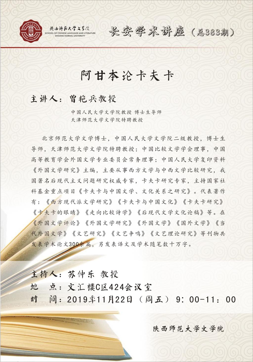 长安学术讲座第383期:《阿甘本论卡夫卡》