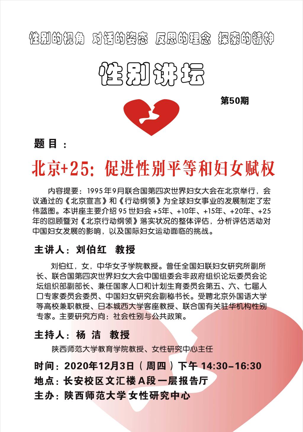 性别讲坛(第50期):北京+25:促进性别平等和妇女赋权