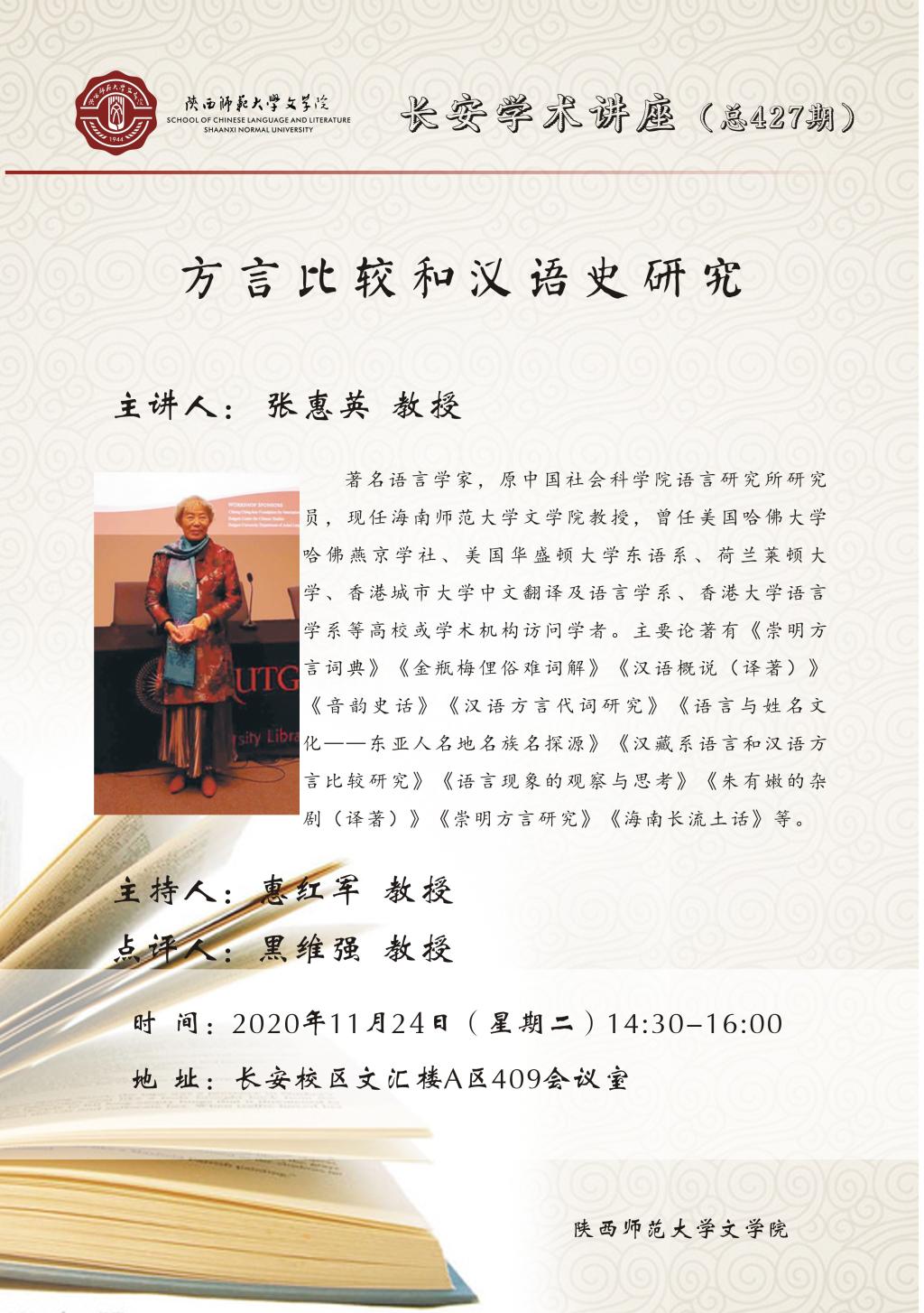 长安学术讲座(总427期):方言比较和汉语史研究
