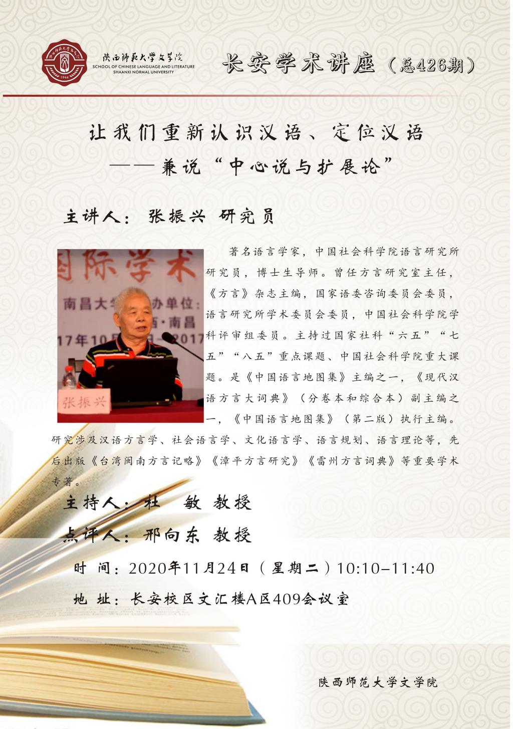 长安学术讲座(总426期):让我们重新认识汉语、定位汉语——兼说“中心说与扩展论”