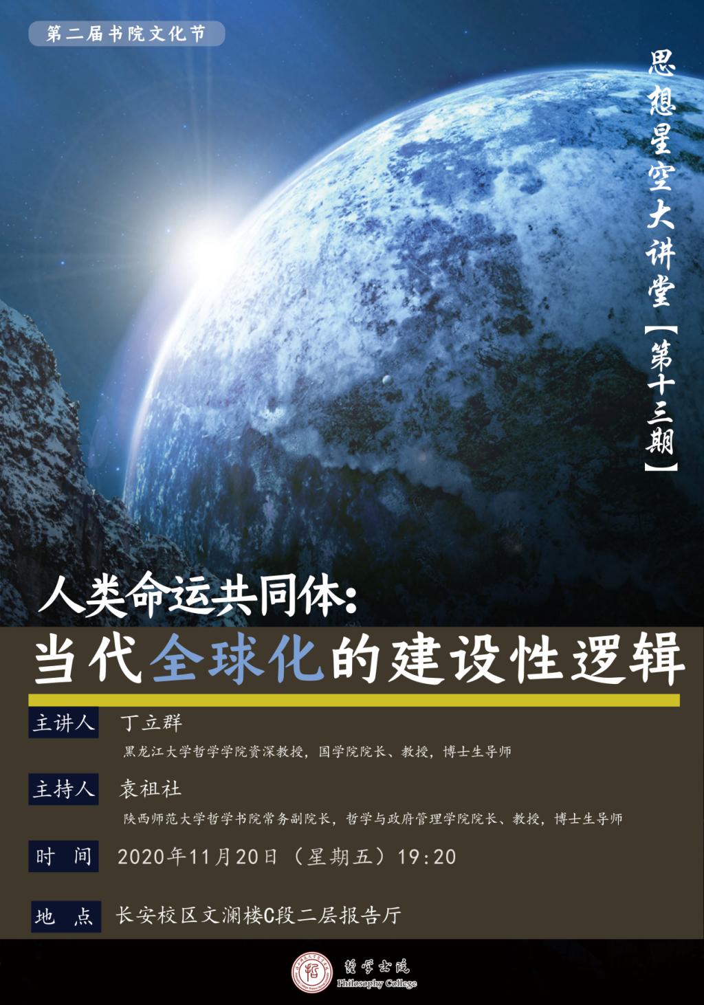讲座主题:人类命运共同体:当代全球化的建设性逻辑