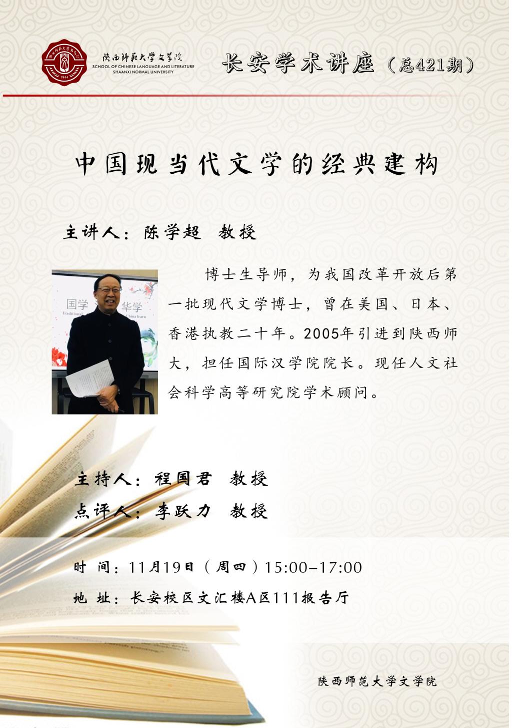 长安学术讲座(总421期):中国现当代文学的经典建构