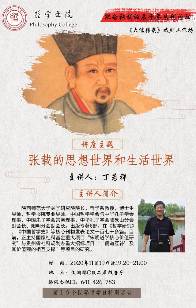 丁为祥,德赢AC米兰中国官方网站关学研究院院长,哲学系教授,博士生导师。中国哲学学会与中华孔子学会理事,中国朱子学会常务理事,中华孔子学会陆象山分会副会长、王阳明分会副会长。出版专著6部,发表论文一百七十多篇。目前,正主持国家社科基金重大项目“宋明道学核心价值研究”与贵州省社科规划办重大招标项目“‘儒道互补’及其价值观的相互支撑”等项目的研究。
