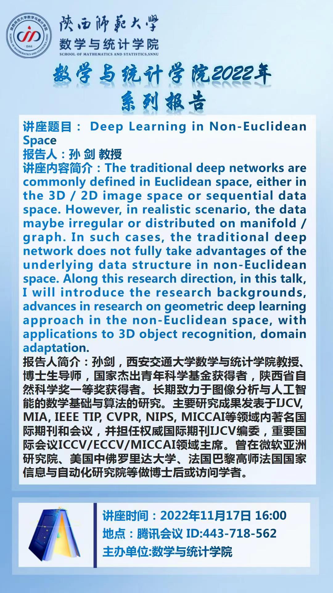 【学术活动月系列十二】Deep learning in Non-Euclidean Space