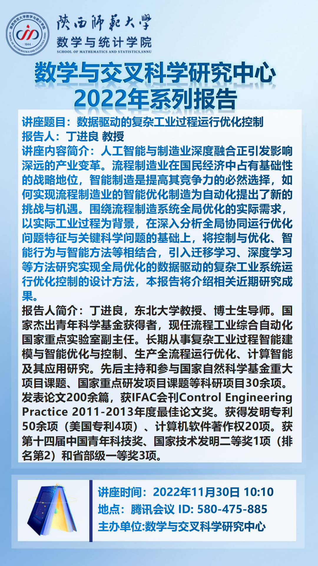 【学术活动月系列二十一】数据驱动的复杂工业过程运行优化控制